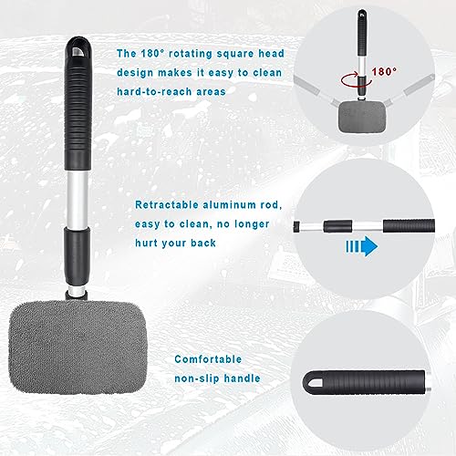 【Good Effect】: The surface of the fabric is finely treated for good absorbency, washable and reusable, leaving no streaks or lint after cleaning. Say goodbye to the constant hassle of removing dust, grime or stubborn stains. The car windshield cleaning kit is designed with a 180°rotating square head. So you can clean any glass surface in tight car spaces easily. And two styles (Triangles and squares) you can choose.
