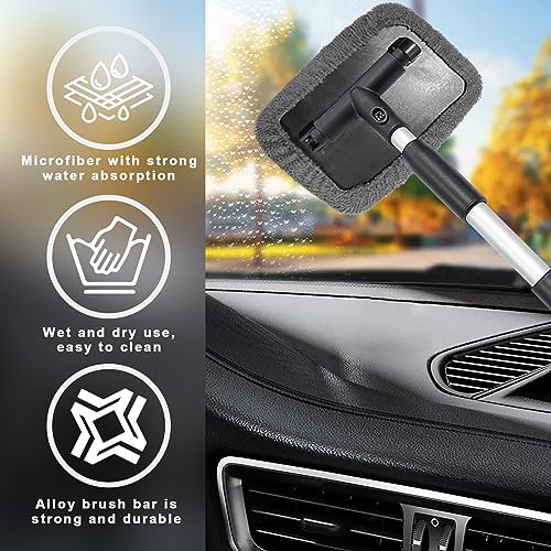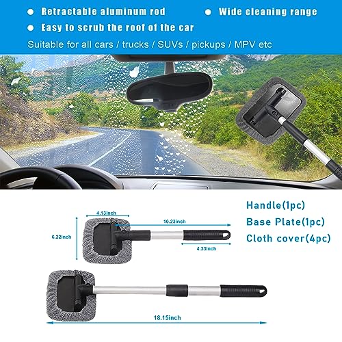 【High Quality Material】: The Automotive windshield cleaning brush tool was made of quality ABS plastic and aluminum alloy tube which is sturdy lightweight and won’t rust; the handles are made of soft PVC and aluminum alloy. And automotive wash pads and towels are made of microfiber with nice water absorbability. You will no longer worry about it can scratch your car.