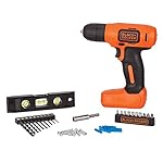 Hang pictures and décor, make quick repairs, and tackle a new DIY project with the BLACK+DECKER 8V MAX* 43 pc. cordless drill and home tool kit. Perfect for light-duty jobs, the cordless drill is compact and easy to maneuver in cramped spaces. Its ergonomic handle provides comfort, balance, and control, while the keyless chuck allows for fast and easy bit changes. Plus, this cordless drill uses an 8V MAX* lithium ion battery that’s easy to recharge via USB. And the home tool kit includes a level, fasteners, bits, and more accessories to make your next project a breeze. *Maximum initial battery voltage (measured without a workload) is 8 volts. Nominal voltage is 7.2 volts.