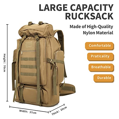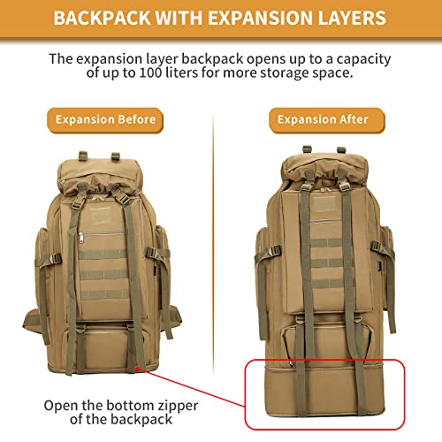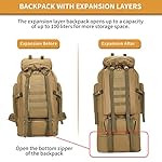 【Large Capacity Rucksack】The ripstop survival rucksac with expansion layers, up to 100L Capacity when Opened for more storage.The tactical backpack features spacious compartments and 2 side pockets to keep your belongings organized.The main pocket of the backpack is designed with a drawstring to make it easier to get things.