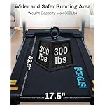 【Widened Intelligent Shock Absorption】 43.5″ x 17.5″ large running track to fit different users‘ stride lengths. Built-in 10 shock absorbers. 5 layers of non-slip running belt, and shock absorbers cushion your knee, muscle, and joints.