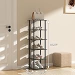 Bamboo Shoe Rack for Small Spaces 6 Tier Tall Vertical Narrow Rack for Closet Stackable Shoe Holder, Black Stand for Entryway Storage Shoe Organizer