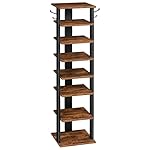 HOOBRO Vertical Shoe Rack, 8 Tier Wooden Shoe Storage Organizer with Hooks, Narrow Shoe Tower for 8 Pairs, Space Saving, for Entryway, Living Room, Bedroom, Rustic Brown BF07XJ01G1