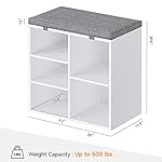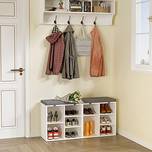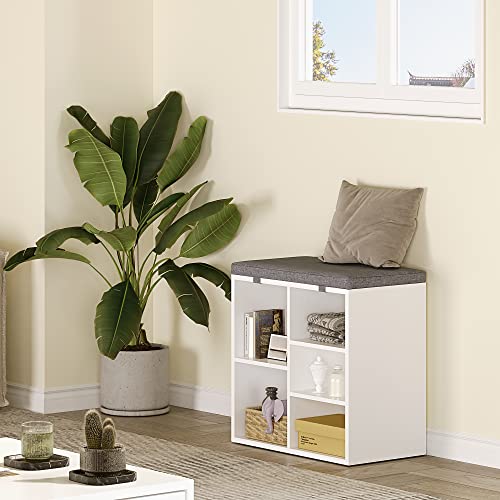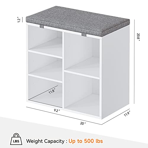 Shoe Storage Bench with Cushion, Cubby Seat Shoe Cabinet, Small Shoe Rack Bench with 3-Tier Adjustable Shelf for Entryway, Bedroom, Living Room, Hallway, Closet and Garage (White, 20 Inches)