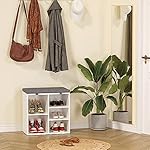 Adjustable Shelves for Multiple Needs: The shelves are adjustable to 4 heights for storing boots or rain boots, provide more shoe storage options for different sized shoes. You can comfortably sit on this clean upholstered bench to dress your feet.