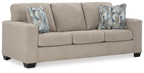 You’re in for a neat treat with this sofa. Its comfy seats are covered in soft, textural upholstery, and the wide track arms are eager to support your quest for total relaxation. Distressed abstract toss pillows bring a fresh breath of contemporary style while accentuating the sofa’s color.