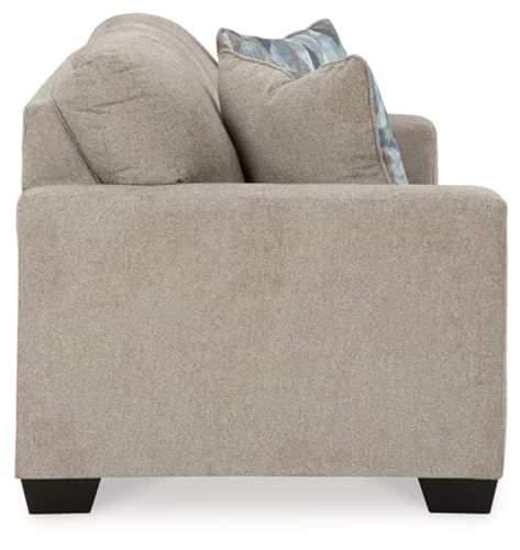 QUALITY CRAFTED: Built with a sturdy corner-blocked frame. Polyester upholstery covers attached back and loose seat cushions. Exposed feet with faux wood finish