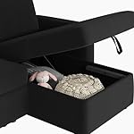 【Ample & Convenient Hidden Storage】The storage chaise of this sleeper sectional sofa discreetly conceals a spacious area measuring 126 cm L × 58 cm W × 21 cm D, perfect for storing blankets and pillows, keeping them clean and easily accessible under its seat. The lid conveniently stays open as you retrieve or store items.