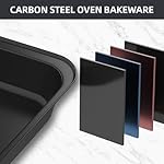 【Carbon Steel Material】The pans bakeware set is made of strong, durable carbon steel material and is oven safe up to 450 degrees Fahrenheit for extreme stability. The baking sheet will not warp and will heat evenly in the oven, increasing its durability and high performance. The sturdy design will withstand years of normal wear and tear.