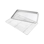 Classic half sheet pan and cooling rack for baking cookies and cakes or roasting vegetables; both are oven safe up to 450 degrees Fahrenheit