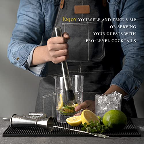 EXTENDED FOOD-GRADE MUDDLER: Cocktail muddler is made of 304 stainless steel, electroplated and polished. Extended 10 inches long handle provides comfortable holding, more labor-saving to crush ingredients of any shape. Grooved ABS material nylon head won’t crack, hard but not destructive, your glass will not break nor scratch.