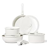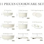 CAROTE 11pcs Pots and Pans Set Non Stick, Cookware Sets Detachable Handle, RV Kitchen Set Removable Handle, Oven Safe, Induction Ready, Stackable Non-stick Set, Cream White