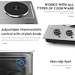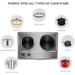 [Convenient] Powered by 120V and 900-Watts (left plate) + 900-Watts (right plate), add up to 1800W. Conveniently cook a variety of foods such as warm sauces, scrambled eggs, grilled cheese, soup, pasta, vegetables and so much more. Very portable design. Ideal for dorm rooms, offices, camping, or even your RV. Great for every day use or as an extra cooking appliance in a busy kitchen. No stovetop required. Simply wipe with a clean and damp cloth when cool.
