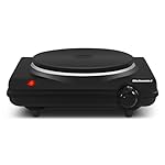 Cooking is quick, easy and consistent with the Elite Gourmet Electric Single Buffet Burner. This portable electric hot plate offers reliable heating and takes up minimal cooking space. At 1,000 watts, it heats up quickly with an adjustable temperature knob. The non-stick cast iron hot plate will ensure even cooking and makes clean up a breeze. It features adjustable temperature control with Off, Warm, Low, Medium, and High settings. The heavy duty cast-iron flat heating plate is easy to clean. It features a cool-touch base and non-skid rubber feet for stable cooking. It’s perfect when you need an extra heat source for holiday cooking and entertaining, or simply use it to keep food warm at a buffet station.