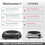 ADJUSTABLE TEMPERATURE CONTROL: Quickly reach and sustain the desired LOW, MEDIUM or HIGH heat settings with the variable temperature knob to keep food warm or boil hot water.