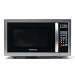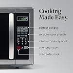 This microwave oven is the ideal size for office break rooms or home kitchens. One-touch cooking programs let you cook six of the most popular food items with the touch of a button. Choose from ten power levels up to 1000. The large digital screen has a clock feature and can display a countdown timer in addition to the remaining cook time. The memory function lets you customize and save your favorite settings, and the large door has an easy-grip handle and child-safety lock.