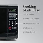 This microwave oven is the ideal size for office break rooms or home kitchens. One-touch cooking programs let you cook six of the most popular food items with the touch of a button. Choose from ten power levels up to 700. The large digital screen has a clock feature and can display a countdown timer in addition to the remaining cook time. The memory function lets you customize and save your favorite settings, and the large door has an easy-grip handle and child-safety lock.